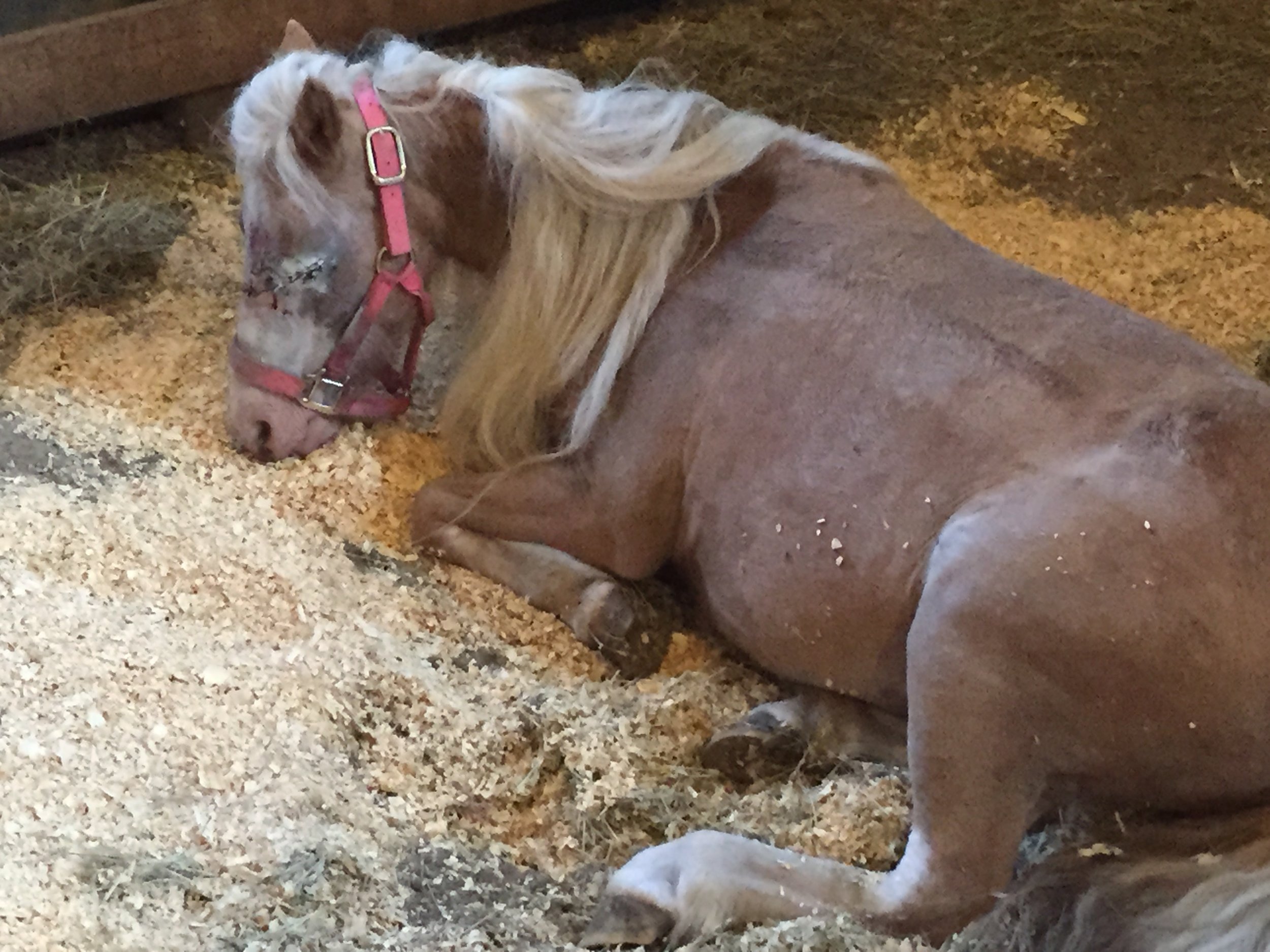 Once the procedure was completed Grace came home and healed. It was obvious that the pain was gone. It took a few months of graduating to larger spaces as she could maneuver them, but she is now in a large safe paddock with a buddy. Grace is amazing, kind, loving and most of all, a happy pony! Some might say that a blind pony has no use, we disagree! I feel that Grace can teach the message that you don't have to be perfect to be valuable.